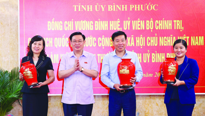 Chủ tịch Quốc hội Vương Đình Huệ tặng quà lưu niệm lãnh đạo tỉnh Bình Phước nhân dịp Chủ tịch Quốc hội và Đoàn công tác