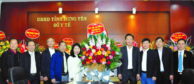 Ông Nguyễn Hữu Nghĩa, Ủy viên Ban Chấp hành Trung ương Đảng, Bí thư Tỉnh ủy Hưng Yên tặng hoa chúc mừng cán bộ, công chức, viên chức ngành Y tế