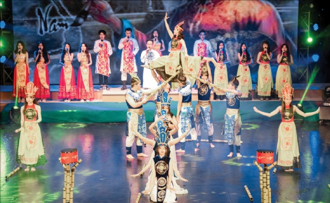 Tiết mục văn nghệ Hào khí đất Việt do các em Trường PTDT Nội trú Him Lam biểu diễn