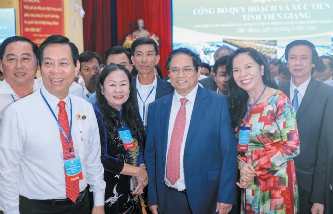 Thủ tướng Phạm Minh Chính và các đại biểu dự Hội nghị công bố Quy hoạch tỉnh Tiền Giang thời kỳ 2021-2030, tầm nhìn đến năm 2050 và xúc tiến đầu tư tỉnh Tiền Giang, ngày 24/3/2024
