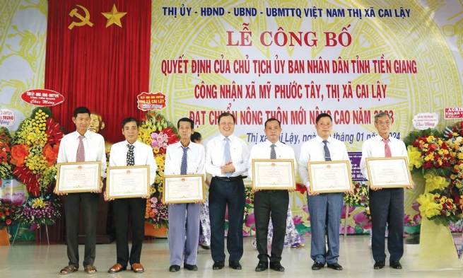 Lễ công bố quyết định của Chủ tịch UBND tỉnh Tiền Giang công nhận xã Mỹ Phước Tây, thị xã Cai Lậy đạt chuẩn nông thôn mới nâng cao, tháng 1/2024
