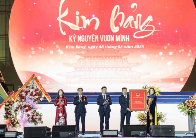 Phó Chủ tịch Quốc hội Nguyễn Thị Thanh trao Nghị quyết 1288/NQ-UBTVQH15 của Ủy ban Thường vụ Quốc hội về thành lập thị xã Kim Bảng cho Đảng bộ, chính quyền và nhân dân thị xã.