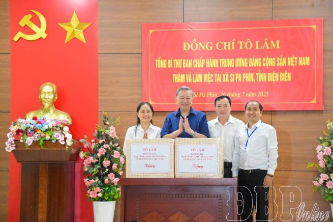 Đồng chí Tô Lâm - Tổng Bí thư Ban Chấp hành Trung ương Đảng thăm Đảng bộ, chính quyền và nhân dân kiểm tra việc triển khai mô hình chính quyền địa phương hai cấp tại xã Si Pa Phìn, ngày 26/7/2025. (Ảnh: Báo Điện Biên Phủ online)