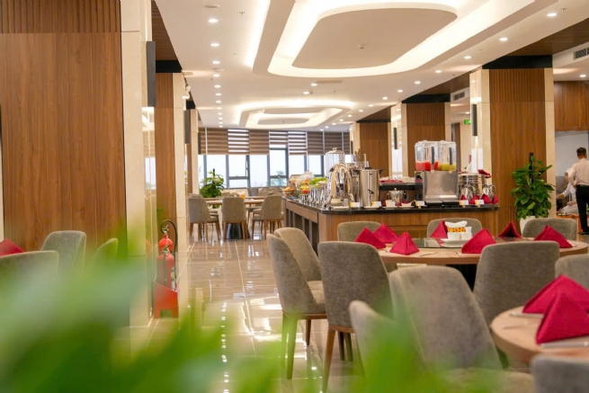 Một góc không gian tiệc sáng buffet tại Khách sạn Mường Thanh Luxury Điện Biên